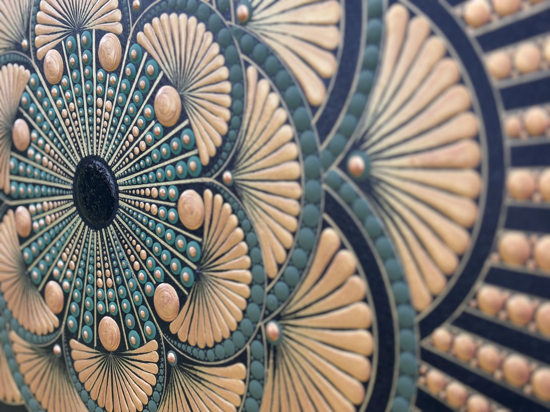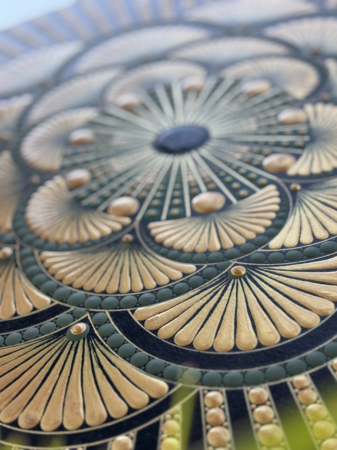 Paveikslas „Deivė“ – tai daugiau nei dekoracija. Tai šiltų spalvų, subtilių formų ir išraiškingų detalių susiliejimas, kuris kasdien pripildo erdvę ramybės, jaukumo ir kūrybinės energijos. Švelnūs oranžiniai tonai, žaižaruojantys aukso akcentai ir lengvi ritmiški taškai kviečia stabtelėti, atsikvėpti ir pasisemti naujų jėgų.
